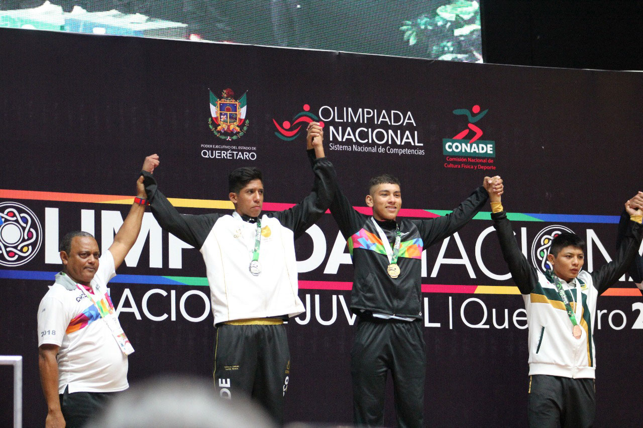 – Querétaro Irving Josué Salazar de la división 63 kg. dio el oro a Querétaro en una final cardiaca y de alarido al vencer a su similar de Jalisco. El queretano, con una lesión a cuestas, logró pasar en primer lugar de su grupo donde enfrentó a Edson Olmos, Erick Hernández, de Jalisco y Durango, respectivamente.