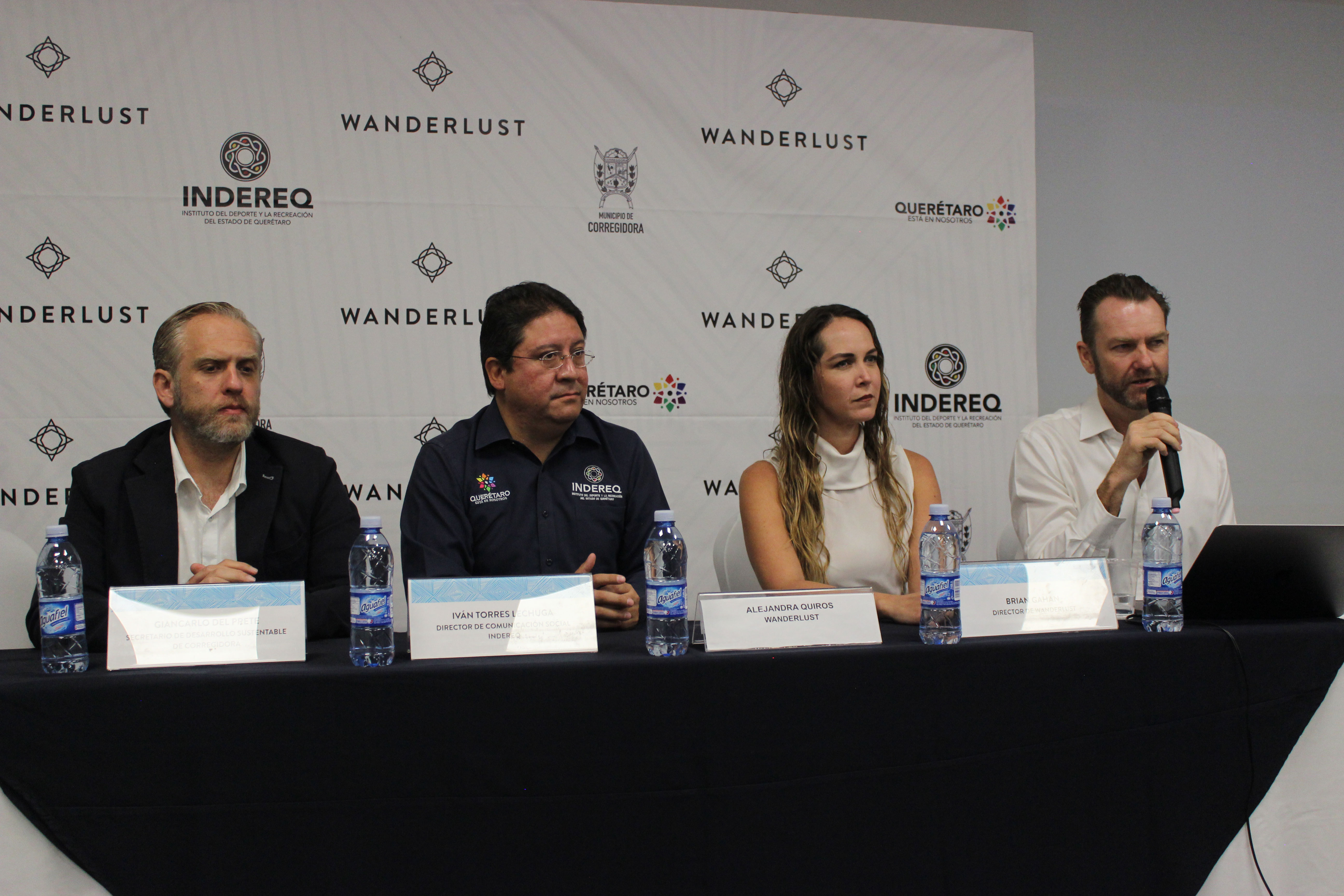 En rueda de prensa estuvieron presentes el secretario de desarrollo sustentable del municipio de Corregidora, Giancarlo del Prete; el director de Wanderlust, Brian Gahan; la organizadora de Wanderlust, Alejandra Quiros; y el jefe de comunicación social del Indereq, Iván Torres.