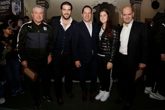 El titular del Ejecutivo hizo entrega de reconocimientos a Mario Pintos Gutiérrez, presidente del Consejo de Futbol de Grupo Imagen Multimedia; Víctor Manuel Vucetich Rojas, director Técnico del Querétaro Futbol Club; así como al futbolista Miguel Ángel Martínez, capitán del equipo. También estuvieron presentes Markus López Winkler, Director del INDEREQ; José de la Garza Pedraza, Oficial Mayor, Arturo Villanueva Navarro, Presidente Administrativo del Querétaro Futbol Club “Gallos Blancos”, así como los jugadores del equipo y demás integrantes del plantel. También estudiantes de la secundaria capitalina “Luis Donaldo Colosio”.