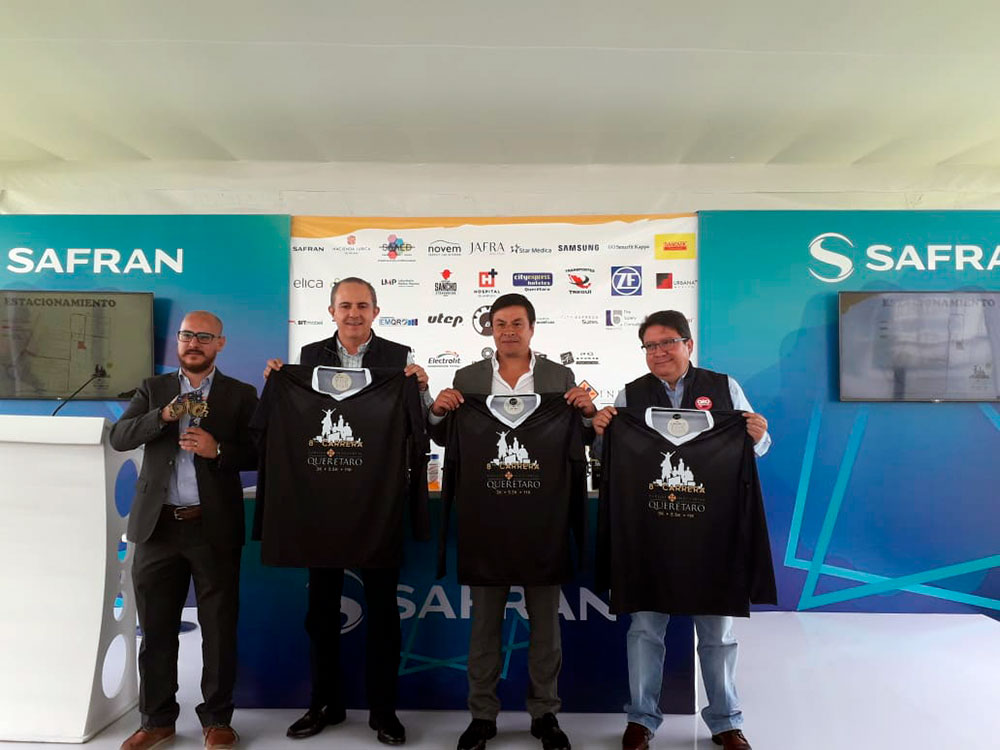 Para dar los detalles de esta competencia se dieron cita, Roberto Gaitán, director general del Parque Industrial Querétaro (PIQ), David Cajero, director de Safran Querétaro, e Iván Torres, director de comunicación del Instituto del Deporte y la Recreación del Estado de Querétaro (Indereq) en representación del director Markus López Winkler.